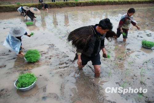 图:四川泸州普降春雨 农民抗旱抢插秧(3)