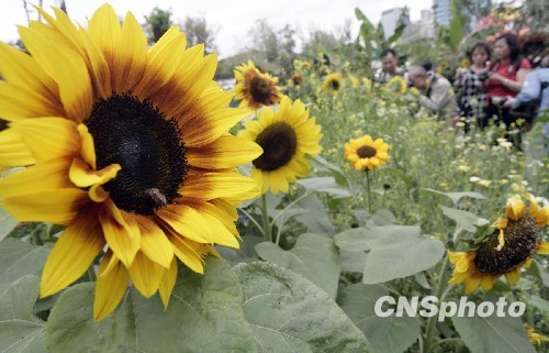 3月24日,香港市民在维园举办的花卉展上拍攝“向日葵”。一年一度的香港花卉展正在维园举行,超过35万株色彩鲜艳、形态各异的花卉每天都吸引大批游客及香港市民参观。