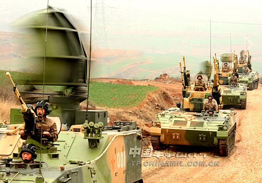 图为该团曾参加国庆60周年阅兵、获得“天戟”美名的某型高炮正在机动途中。