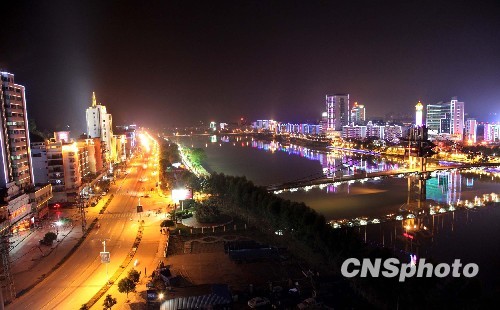 图为多姿多彩的灯光将沙县装扮得风情万种、充满灵气和生机。中新社发 杨婀娜 摄