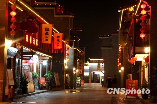 图为夜幕下的沙县小吃文化城流光溢彩。中新社发 杨婀娜 摄