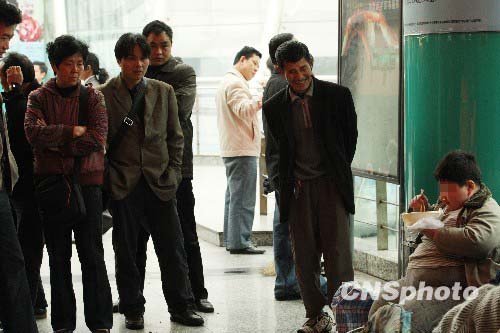 一位因肥胖遭父母遗弃的小孩子狼吞虎咽吃东西引起一些旅客关注。中新社发 朱文标 摄
