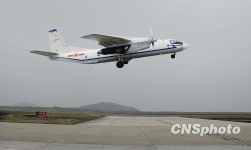 3月23日,实施人工增雨作业的飞机正在起飞。 中新社发 刘应华 摄