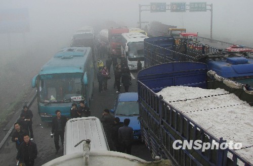 3月26日,四川成(都)乐(山)高速公路彭山段78公里处因大雾发生多起交通事故, 22辆车连环追尾相撞,致使高速公路被迫关闭,车祸造成2人当场死亡,4人重伤。