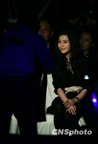 3月26日晚,刚走出巴黎时装周秀场的范冰冰亮相北京国际时装周,出席某品牌代言活动,并到场观秀。中新社发 陆欣 摄