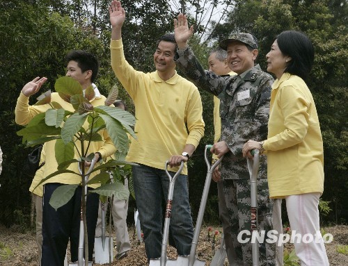 3月27日,香港植树日典礼在西贡蕉坑举行,解放军驻港部队政治委员刘良凯中将参加了植树日活动。中新社发 张勤 摄