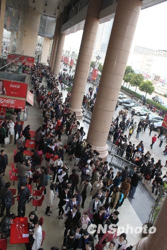 图为参赛选手在招聘场外排起“长龙”等待登记。中新社发 徐金波 摄