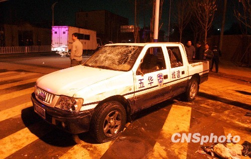 图为被砸毁的城管执法车辆。中新社发 昆明市宣传部提供 摄