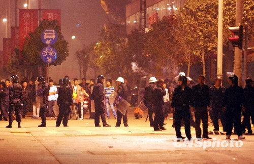 3月26日晚至27日凌晨,昆明市北市区北仓村农贸市场门口发生城管与小贩冲突事件,致使数百群众聚集,导致城管和公安部门共10辆汽车被掀翻,其中3辆被点燃,9名城管工作人员受伤,4名警员被砸伤。中新社发 昆明市宣传部提供 摄