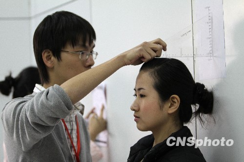 图为南航海选“亚运空姐”武汉现场。 中新社发 孙新明 摄
