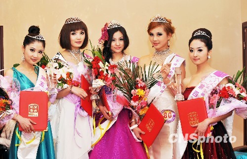 3月28日,第四届全国平面模特大赛总决赛在河南平顶山落下帷幕,来自全国26个省市自治区的80多个城市的100名佳丽经过运动装、时装、晚装、比基尼、才艺等环节的激烈角逐,最后来自广东深圳的选手孙子淇(中)摘得本次大赛的冠军,邝容一、常慧、李丹妮、温晓菁分别获得亚军、季军、第4名和第5名。