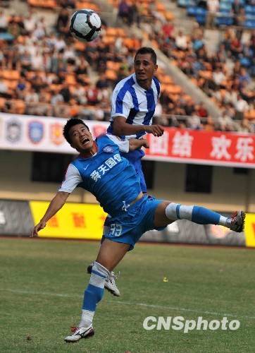 2010年3月28日,新赛季中超联赛首轮鸣哨,深圳红钻队在主场深圳体育场迎战江苏舜天队,最终深圳队以0比0与江苏队握手言和。 中新社发 吴峻 摄