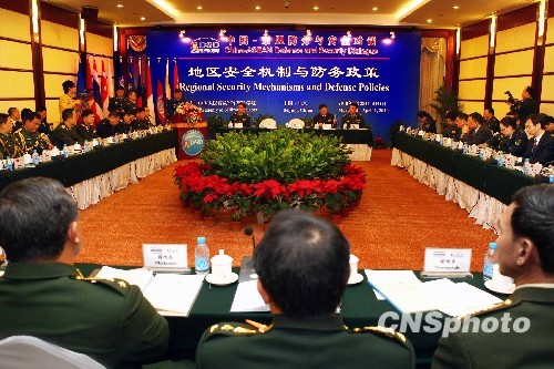 由中国人民解放军军事科学院承办的“中国与东盟(10+1)防务对话”,3月29日上午在北京开幕,来自中国和东盟各国的防务政策官员、防务学者等40名代表与会,此次“对话”为期三天,以“地区安全机制与防务政策”为主题,按“地区防务机制的现状与发展”、“中国与东盟防务安全合作”、“中国与东盟各国国防政策”三个专题进行研讨。中新社发 宋吉河 摄