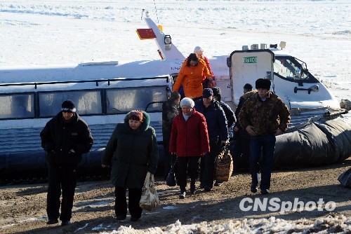 图:中俄界河黑龙江春季气垫船运输正式开通(3)