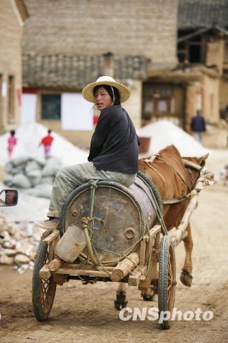 图为3月31日,云南文山旱区出门运水的民众。中新社发 刘冉阳 摄