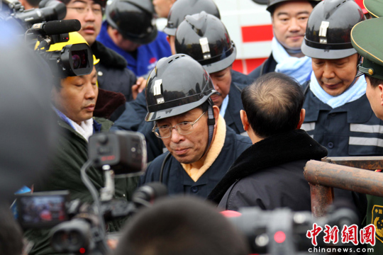 3月31日上午,王家岭矿透水事故抢险进入第四天,救援抢险仍在紧张进行。31日中午,国家安监总局局长骆林,安全监管总局副局长、国家煤矿安监局局长赵铁锤,山西省长王君下井查看。