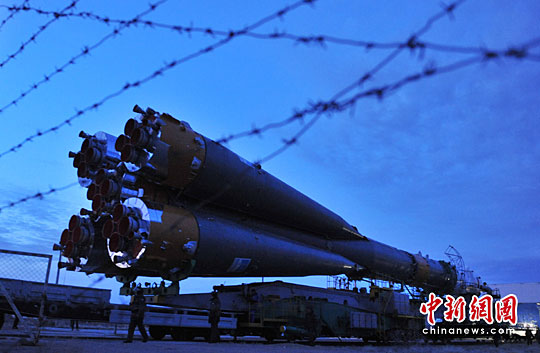 俄罗斯联盟TMA-18火箭进入发射场。