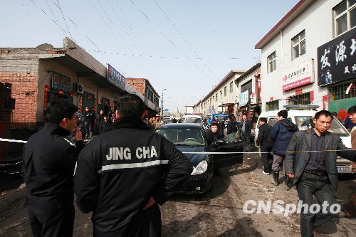 4月1日,洛阳市伊川县国民煤业有限公司(半坡乡白窑村六矿)瓦斯爆炸后,警方远远拦起警戒线。中新社发 王中举 摄