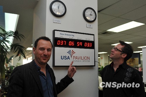 图为BRC总部办公区设置了世博会倒计时钟,随时提醒员工加紧工作,保证美国馆如期完工。中新社发 张炜 摄