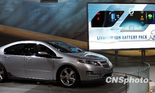 一款雪佛兰电动车VOLT在美国纽约国际车展亮相。中新社发 孙宇挺 摄