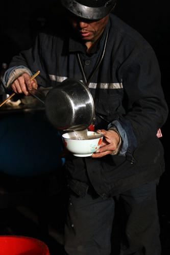 4月1日,救援人员每天工作十几个小时,吃的却仅是馒头和清汤,看不见一片菜叶。高学余 摄