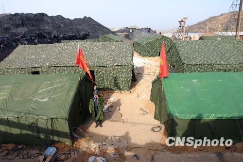 王家岭矿透水事故现场抢险帐篷已搭建(3)