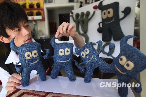 图:头发丝版世博吉祥物海宝亮相京城(2)