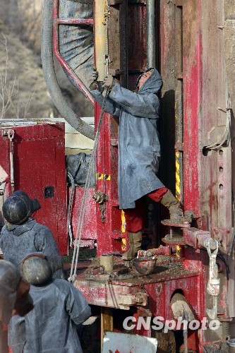 图为搭建钻杆准备井下输送营养液。中新社发 张云 摄