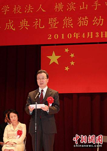 中国驻日本大使程永华致辞时表示,新校舍的落成不仅大大改善了侨校的教学条件,而且奠定了今后百年发展的新基础。中新社发 关妍 摄