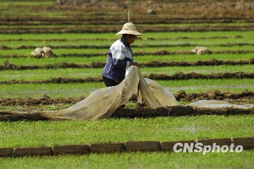 图为4月2日,农民田间大春积极维护。中新社发 田洪 摄