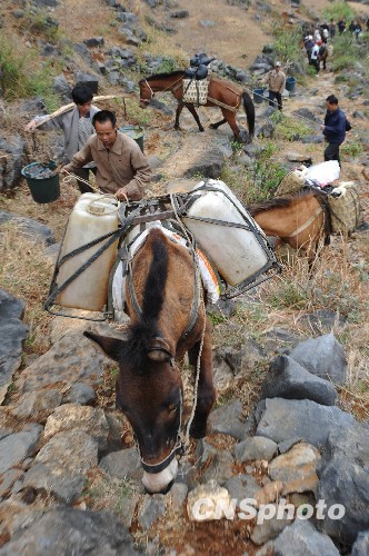 图:广西山村旱区人挑马驮翻山越岭运水(3)