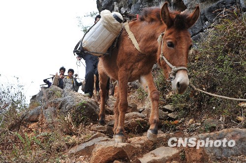 图:广西山村旱区人挑马驮翻山越岭运水(4)