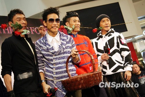 4月3日,香港著名歌星许志安、苏永康、梁汉文、张卫健口咬红玫瑰出场会歌迷。为其四子的最新唱碟宣传,并为百名“粉丝”签名。