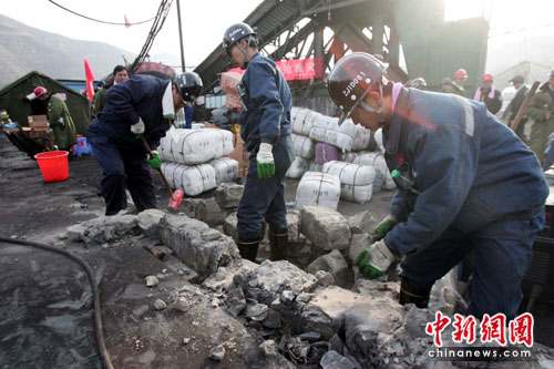 抢险人员清理并抢修急救通道。中新社发 张云 摄