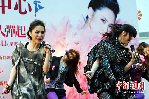 香港著名组合Twins成员蔡卓妍、钟欣桐在新都城火热登场。中新社发 洪少葵 摄