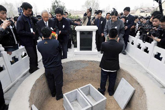 亲属们将季羡林先生的骨灰和其夫人的骨灰合葬。朱峥 摄