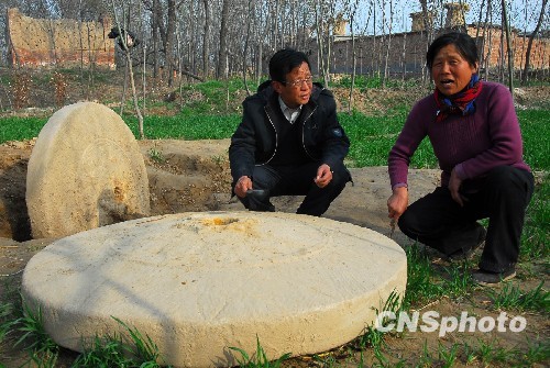 “石轮”发现者时桂平(右)。中新社发 史奎华 摄