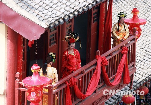 清明上河园上演“王员外招亲”,吸引众多市民游客前来观看。中新社发 王中举 摄