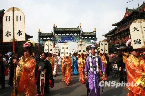 图为“各国使节”、“各藩国大使”紧随包大人巡游。中新社发 王中举 摄