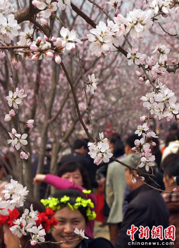 4月7日,正在北京植物园举办的桃花节吸引众多游客前来观花,园内的山桃花、白山碧桃花、迎春花、玉兰花等争相怒放。