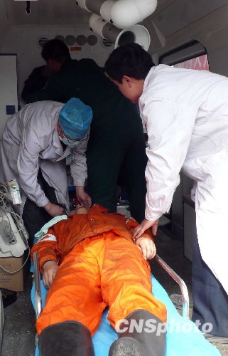王家岭透水事故:一救援人员体力透支晕倒(4)