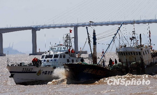 据了解,此次巡航的重点是对入沪船舶进行核查、验证和安检,打击各种海上违法犯罪行为,为上海世博会的顺利召开,提供良好的海上治安环境。中新社发 索向鲁 摄