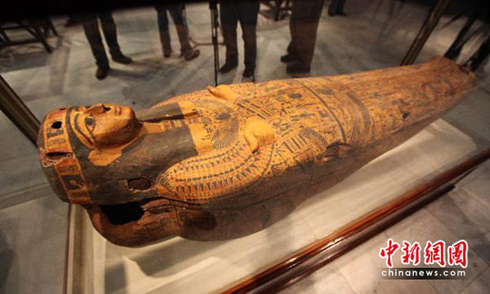 4月7日,经过修复的距今约4000年前的法老石棺在埃及首都开罗的埃及博物馆里展出。该石棺是古埃及第12王朝法老阿蒙涅姆赫特一世的石棺,由玫瑰色花岗岩制成。