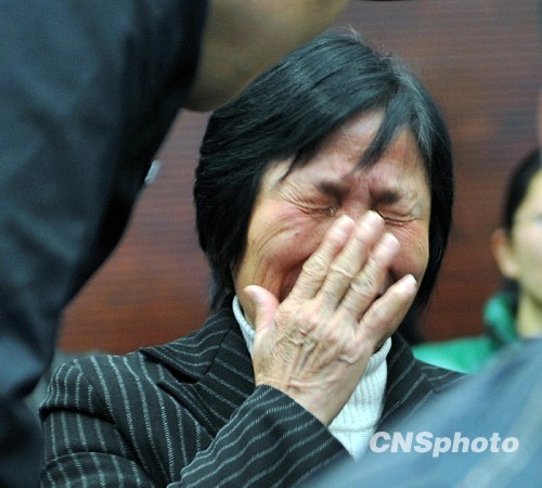 4月8日,南平中院开庭审理郑民生故意杀人案。家属们听到的受难及受伤孩子的名字时失声悲泣。中新社发 张丽君 摄