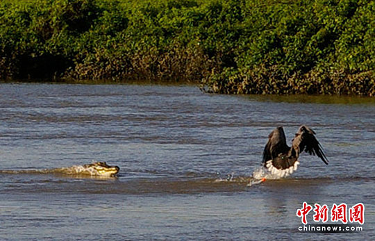 图:老鹰捕鱼反被身后鳄鱼杀死(2)