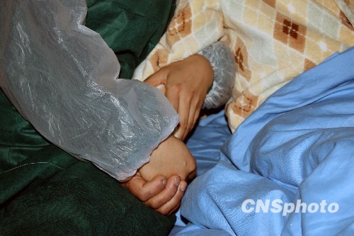 图:王家岭煤矿事故获救三工人与亲人团聚(2)