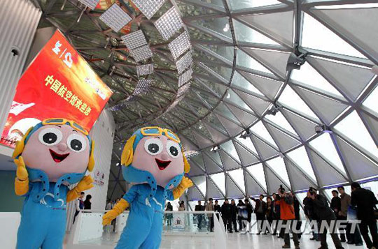 4月9日,上海世博会中国航空馆宣布展馆全面竣工,已经达到试运营要求。作为世博会历史上第一个航空主题馆,外形犹如“云朵”的中国航空馆以“飞行连接城市,航空融合世界”为主题。展馆内部分为两层,包括前展区、主展区、后展区和模拟机体验区,以多媒体、声光电特效等生动有趣的互动体验,诠释飞行与城市、生活之间的关系,将参观者带入充满无限梦想、探索无穷奥妙的飞翔之旅。任珑摄