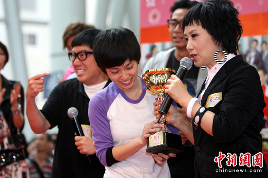 当天,香港无线电视一众艺人宣传热播剧目《女王办公室》,将欢笑带给观众。中新社发 洪少葵 摄