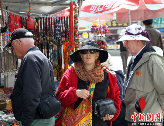 图为八角街上境外游客在购物。中新社发 徐长安 摄