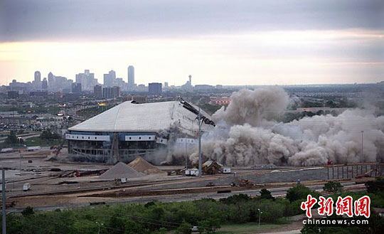 图:美国达拉斯牛仔球场25秒内爆破拆除(4)